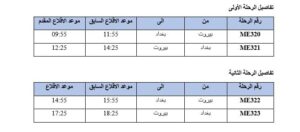 أعلنت شركة طيران الشرق الأوسط – الخطوط الجوية اللبنانية، عن إعادة تسيير رحلاتها من وإلى العاصمة العراقية بغداد، وذلك ابتداءً من يوم الأربعاء الواقع في 25 حزيران 2025.