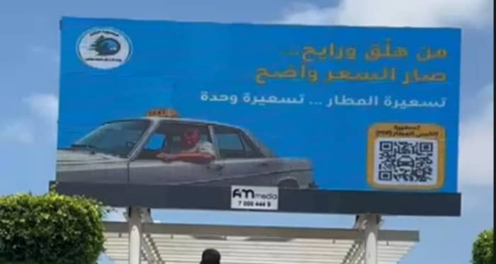انتشرت لافتات قرب المطار تظهر حملة تقوم بها وزارة الأشغال حول تسعيرة سيارات الأجرة. وقد كتب عليها “تسعيرة المطار… تسعيرة وحدة”.