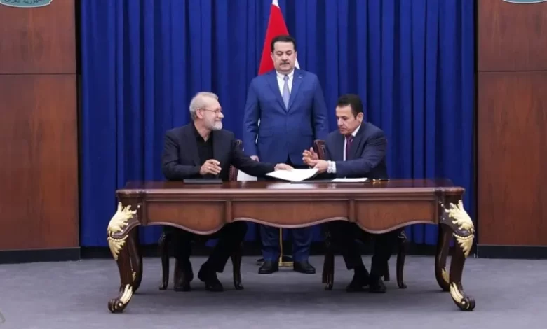 ووقع مستشار الأمن القومي العراقي قاسم الأعرجي، وعلي لاريجاني، الاتفاقية، بحضور رئيس وزراء العراق محمد شياع السوداني.