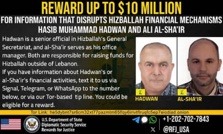 مكافأة أميركية ضخمة مقابل معلومات عن مسؤولين بـ”الحزب”