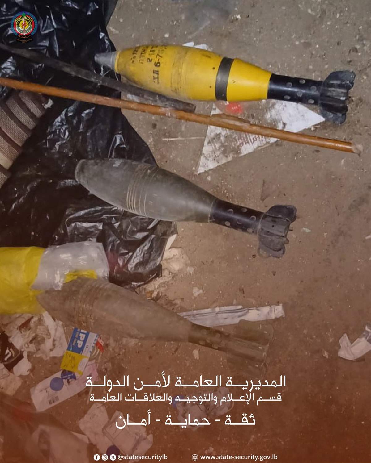 أعلنت المديرية العامة لأمن الدولة – قسم الإعلام والتوجيه والعلاقات العامة، أنه في متابعة لعملها الاستعلامي على الأراضي اللبنانية، تم العثور على ثلاث قذائف مدفعية عيار 120 ملم في منطقة حنكش – برج حمود.