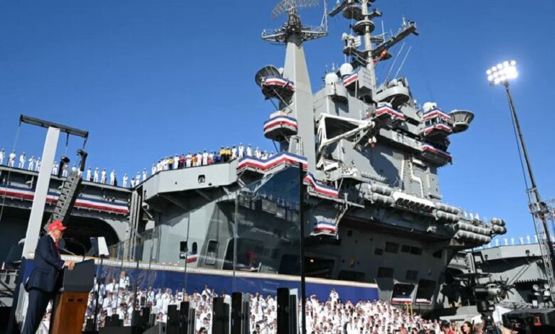 وقال ترامب في خطاب ألقاه في قاعدة نورفولك البحرية، بجوار حالة الطائرات هاري إس.ترومان، إن الولايات المتحدة قصفت السفينة للاشتباه في أنها تحمل مخدرات، مؤكدًا أن واشنطن ستبدأ التصدي لعمليات تهريب المخدرات التي تتم عن طريق البر.