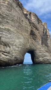 تبحر القوارب بمحاذاة كورنيش بيروت، حيث تُشاهد المدينة وهي ترتفع خلفك تدريجياً، وتبدأ صخرة الروشة بالظهور أمامك بكل عظمتها. وما إن تقترب منها، حتى تنكشف تفاصيلها المدهشة؛ فتحة طبيعية في وسطها، صخور شاهقة نحتتها الأمواج عبر آلاف السنين، ومياه بلون أزرق فيروزي تحيط بها من كل الجهات