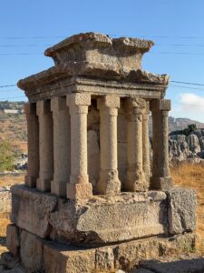 يحتوي على بقايا أعمدة، نقوش، ومغارة كبيرة كانت تستخدم لأغراض دينية أو كمكان للعبادة. ويعد هذا المعلم من أجمل المعالم الأثرية في الشرق الأوسط.