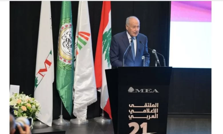 جاءت تصريحات أبو الغيط خلال افتتاح الدورة الحادية والعشرين لـ«الملتقى الإعلامي العربي» تحت عنوان: «الإعلام والتنمية… شركاء الحاضر، تحالف المستقبل»، بمشاركة رئيس الجمهورية اللبنانية جوزيف عون، ووزير الإعلام بول مرقص، وعدد من الوزراء العرب والسفراء والإعلاميين.