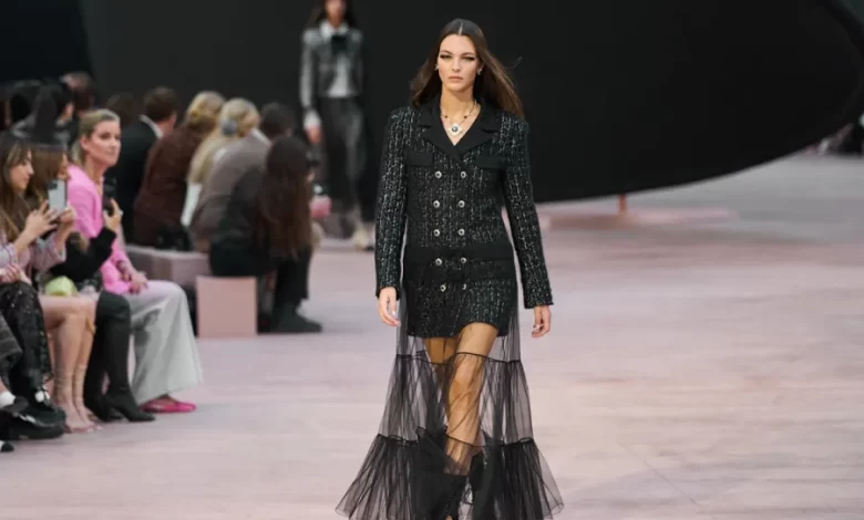 عند الحديث عن أبرز صيحات خريف 2025 لا يمكن أن نتجاهل الحضور الطاغي للتنانير الشفافة، فقد صادفناها في عروض كبريات الدور العالمية، ولكننا وقفنا منبهرات أمام الطلة شديدة الفخامة من توقيع شانيل “Chanel”، فقد مزجت بكل براعة بين الطابع الكلاسيكي المتمثل في الفستان التويد المصمم على طراز الجاكيت مزدوج الصدر واللمسة الجريئة التي عكستها التنورة الشيفون الطويلة الموصولة به.