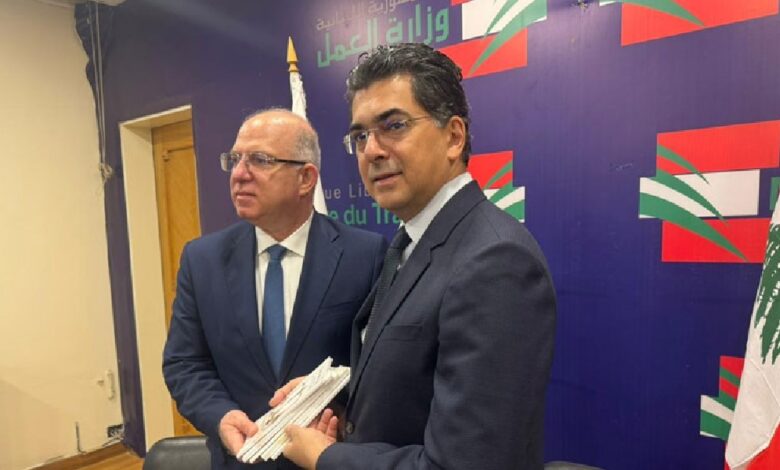 عقد وزيرا العمل محمد حيدر والإعلام بول مرقص، مؤتمرًا صحافيًا صباح اليوم الثلثاء في وزارة العمل قدم خلاله الوزير مرقص للوزير حيدر دليلاً بعنوان “إعلام المواطن بحقوقه في العمل”، وهو دليل خطي وإلكتروني يتضمّن سلسلة من الأسئلة والأجوبة الشاملة والمبسّطة التي أعدّها فريق عمل الوزير مرقص، بالاضافة إلى نماذج تطبيقية عملية لإنذارات ودعاوى وطلبات، في حضور المديرة العامة لوزارة العمل بالإنابة مارلين عطالله ورئيسة مصلحة القوى العاملة الدكتورة إيمان خزعل وعدد من المسؤولين والإداريين في الوزارة.