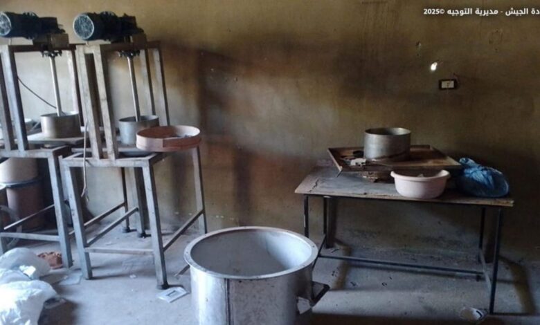 أعلنت قيادة الجيش البيان في بيان أن “بتاريخ ٢٢ /١١ /٢٠٢٥، وبنتيجة عمليات الملاحقة المستمرة لعصابات الاتجار بالمخدرات، دهمت دورية من مديرية المخابرات تؤازرها وحدة من الجيش معملًا لتصنيع حبوب الكبتاغون في منطقة القصر – الهرمل، وعملت على تفكيك آلاته ومعداته، كما ضبطت كمية كبيرة من المواد الأولية التي تستخدم في تصنيع هذه الحبوب.