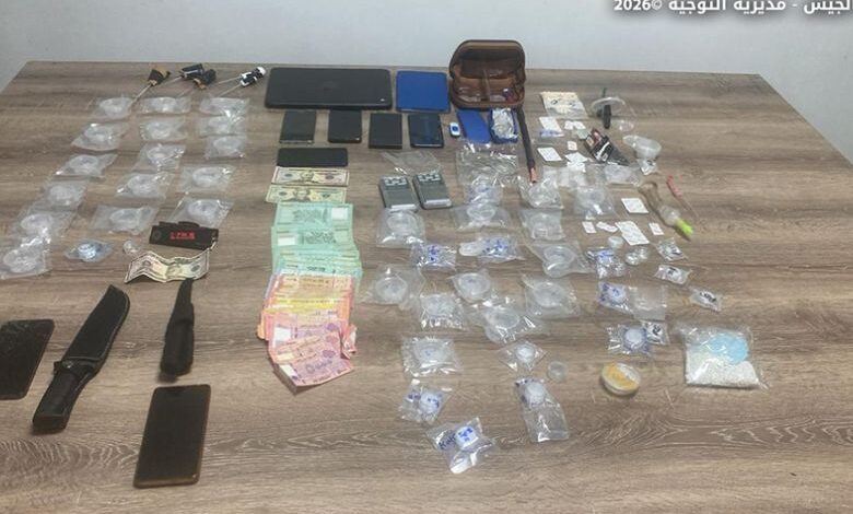 في إطار مكافحة الاتجار بالمخدرات وملاحقة المخلين بالأمن، نفّذت دورية من مديرية المخابرات عملية دهم في منطقة الكسليك – كسروان، وأوقفت المواطن (م.م.) وشقيقه (ا.م.) والمواطن (ا.ص.) لتأليفهم عصابة تنشط في ترويج المخدرات، وضبطت في حوزتهم كمية منها. وبناءً على نتائج التحقيق مع الموقوفين الثلاثة، دهمت دورية من المديرية أحد المنازل في منطقة الدورة – المتن وأوقفت امرأة تعمل لمصلحة العصابة وتستخدم المنزل لتوضيب المخدرات وممارسة أعمال الدعارة.