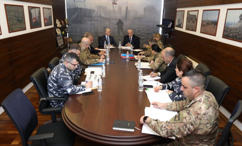 استقبل وزير الدفاع الوطني اللواء ميشال منسى في مكتبه في اليرزة اليوم وزير الداخلية والبلديات العميد أحمد الحجار، نائب حاكم مصرف لبنان الدكتور مكرم بو نصّار، النائب السابق شامل روكز، العميد المتقاعد بسام ياسين، وعددًا من الضباط من الجيش اللبناني وقوى الأمن الداخلي المختصّين في الشؤون المالية والإدارية المرتبطة برواتب العسكريين، وذلك استكمالًا للاجتماع التحضيري الأول الذي عُقد الأسبوع الماضي، في إطار التحضير لجلسة مجلس الوزراء المقرّرة بعد ظهر اليوم والمخصّصة لبحث آليات تحسين رواتب العسكريين في مختلف الأجهزة الأمنية، سواء في الخدمة الفعلية أو من المتقاعدين.