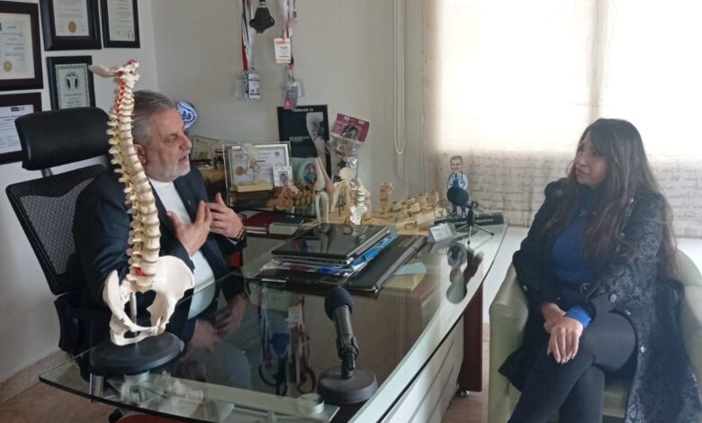 وتحدث عن الأسباب المؤدية للديسك،من طريقة الجلوس الخاطئة،الى حمل الاثقال،وطريقة النوم ….وكثرة استعمال الهواتف الخليوية.