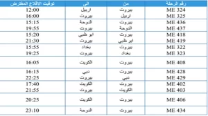 وأوضحت الشركة في بيان أنها قررت تشغيل رحلة إضافية إلى لارنكا تنطلق عند الساعة الثامنة مساءً بالتوقيت المحلي لمدينة بيروت، بهدف استيعاب الطلب المتزايد وتسهيل حركة المسافرين في ظل القيود الجوية المفروضة. كما أعلنت تأجيل رحلة العودة من جدة إلى بيروت رقم ME369، والتي كانت مقررة في 28 شباط 2026، إلى صباح يوم الأحد 1 آذار عند الساعة السادسة صباحاً بتوقيت المملكة العربية السعودية.