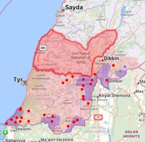 ميدانيًا، يظهر التوغّل الإسرائيلي موزعًا على ثلاثة محاور رئيسية: الغربي من الناقورة إلى البياضة وشمع، الأوسط من القوزح إلى بنت جبيل عبر دبل وبيت ليف، والشرقي من القنطرة إلى دير سريان والخيام وصولًا إلى وادي الليطاني. وفي حين تُظهر الخرائط سيطرة إسرائيلية جزئية على هذه النقاط، إلا أن الاشتباكات المستمرة تؤكد أن السيطرة الكاملة على الأرض لم تتحقق بعد، مع استمرار العمليات الجوية والمدفعية والهجمات الصاروخية ضد أهداف برية.