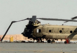 بالصور.. مسيّرة إيرانية تصيب شينوك أميركية في الكويت