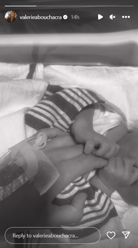 وفي التفاصيل، نشرت فاليري أبو شقرا صورةً ليدها وهي تمسك بطفلٍ حديث الولادة مُعلنةً خوضها تجربة الأمومة للمرّة الثالثة.