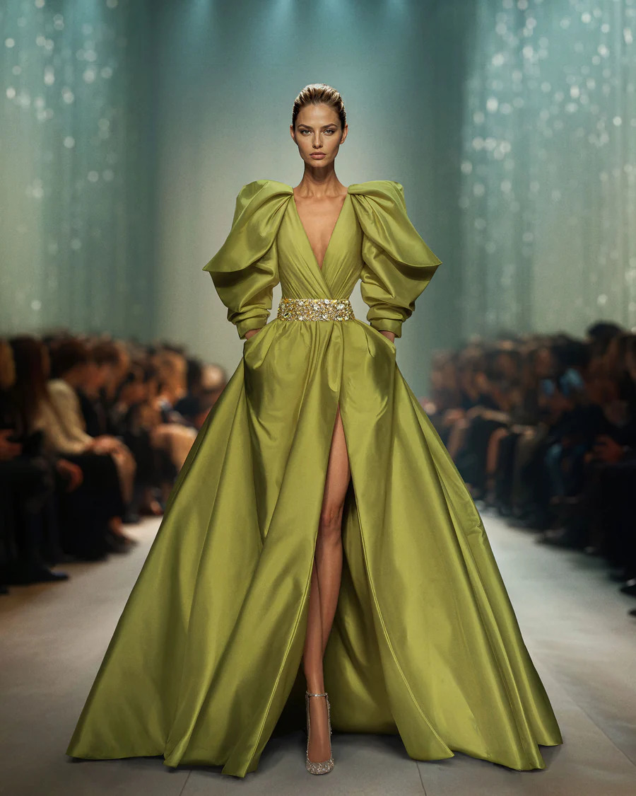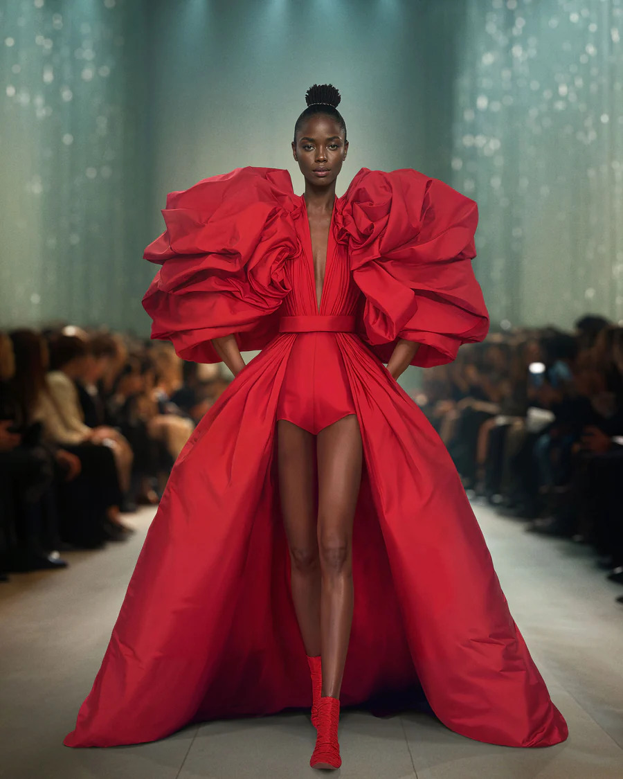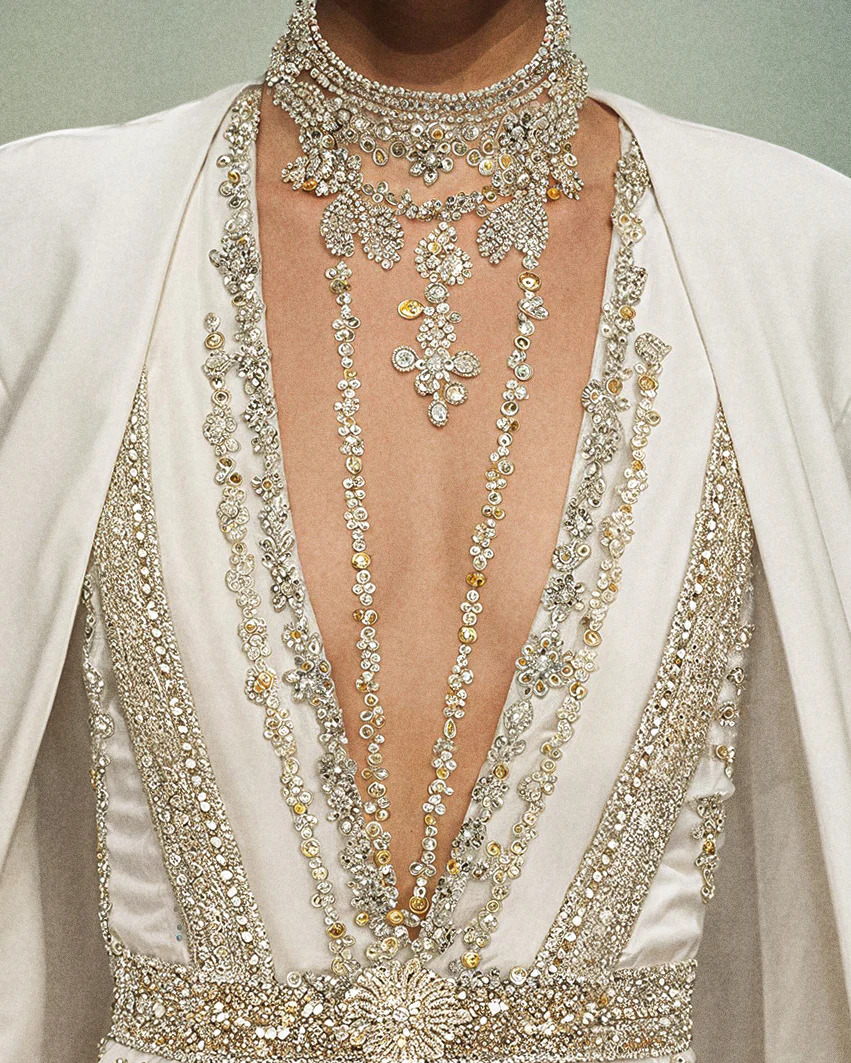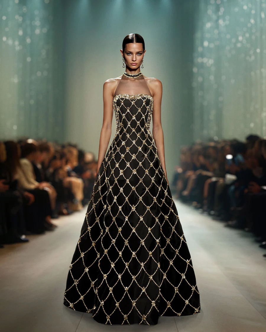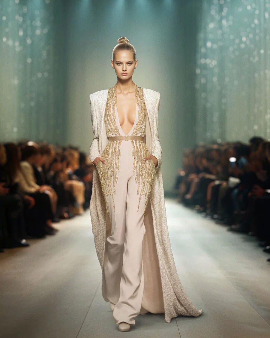 فستان مع كورسيه… تنورة واسعة…. خصر ظاهر…. طابع ماري أنطوانيت غلب على #مجموعة سعيد قبيسي كوتور ل#ربيع وصيف 2024 التي أطلق عليه عنوان “سيمفونيّة الألوان” والتي تميّزت بالإبداع الساحر والرائع. وإلى جانب تلك القصّات الأميريّة المذهلة برزت فساتين تتميّز بأحجام وقصّات هندسيّة كالجمبسوت الأبيض المطرّز مع مشلح خلفي، ولفت نظرنا الأوفر أول مع سترة بيضاء ذي الأكتاف العريضة وكذلك الفستان الأسود من التافتا الذي يتميّز بالكورسيه المطرّز المفتوح على الصدر مع الأكمام المنفوخة على الأكتاف. قطع مبتكرة رائعة تحاكي أنوثة المرأة نفّذت بأقمشة التافتا والساتان والكريب.