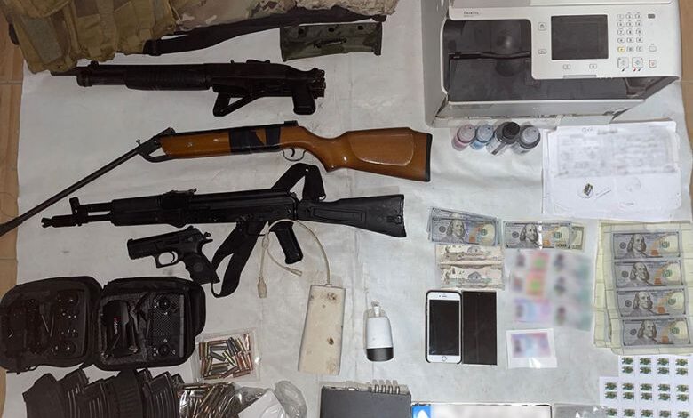 ضبط أسلحة وذخائر حربية ومعدات لتزوير الأموال