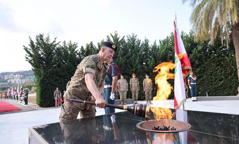 قائد الجيش يضع إكليلًا من الزهر على نصب شهداء الجيش