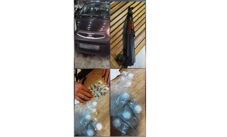 وتابعت: “بتفتيش السّيّارة، عُثِرَ بداخلها على ممشط و30 طلقة صالحة للاستعمال عائدة لبندقية الكلاشينكوف، وست طبّات بلاستيكية تحتوي على مادّة الكوكايين”.