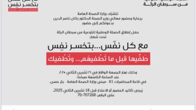 “الصحة” تطلق الحملة الوطنية للتوعية من سرطان الرئة برعاية وزير الصحة ناصر ركان الدين، تطلق وزارة الصحة الحملة الوطنية للتوعية…